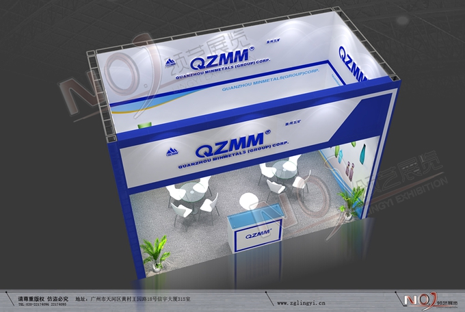 契合泉州五礦集團(tuán)的品牌形象和產(chǎn)品特性,采用矩形結(jié)構(gòu),再搭配燈具燈光的效果,襯托出展位高端、時(shí)尚的氛圍,突出一種現(xiàn)代、大氣的時(shí)尚品味。