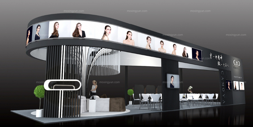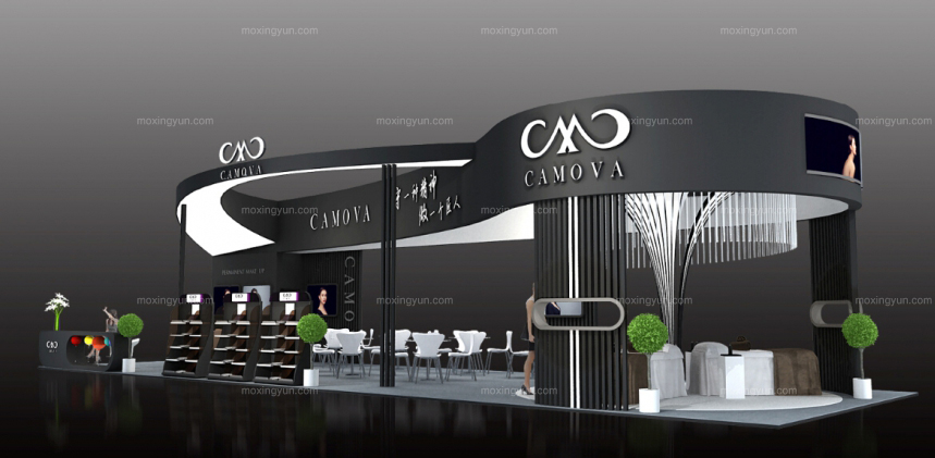 契合卡莫亞合成的品牌形象和產(chǎn)品特性,采用線條,再搭配燈具燈光的效果,襯托出展位簡約、舒適的氛圍,突出一種現(xiàn)代、高端的時尚品味。