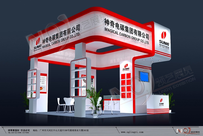 契合神奇電碳的品牌形象和產(chǎn)品特性,采用框型結(jié)構(gòu),再搭配燈具燈光的效果,襯托出展位簡潔、明亮的氛圍,突出一種創(chuàng)新、簡約的時尚品味。