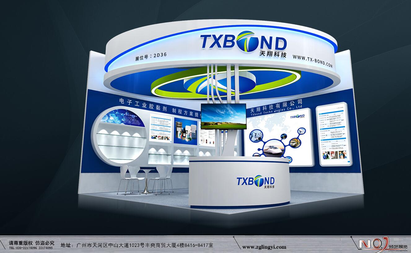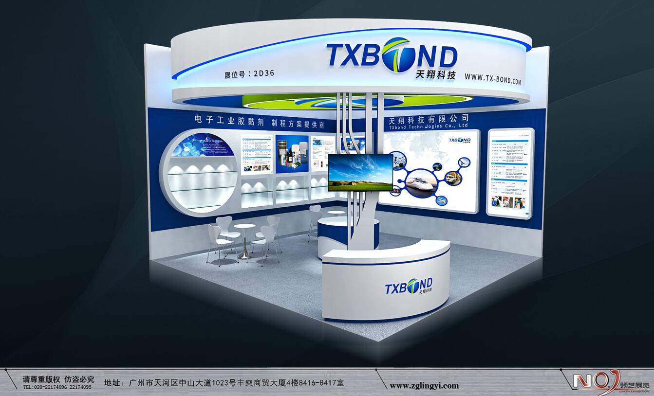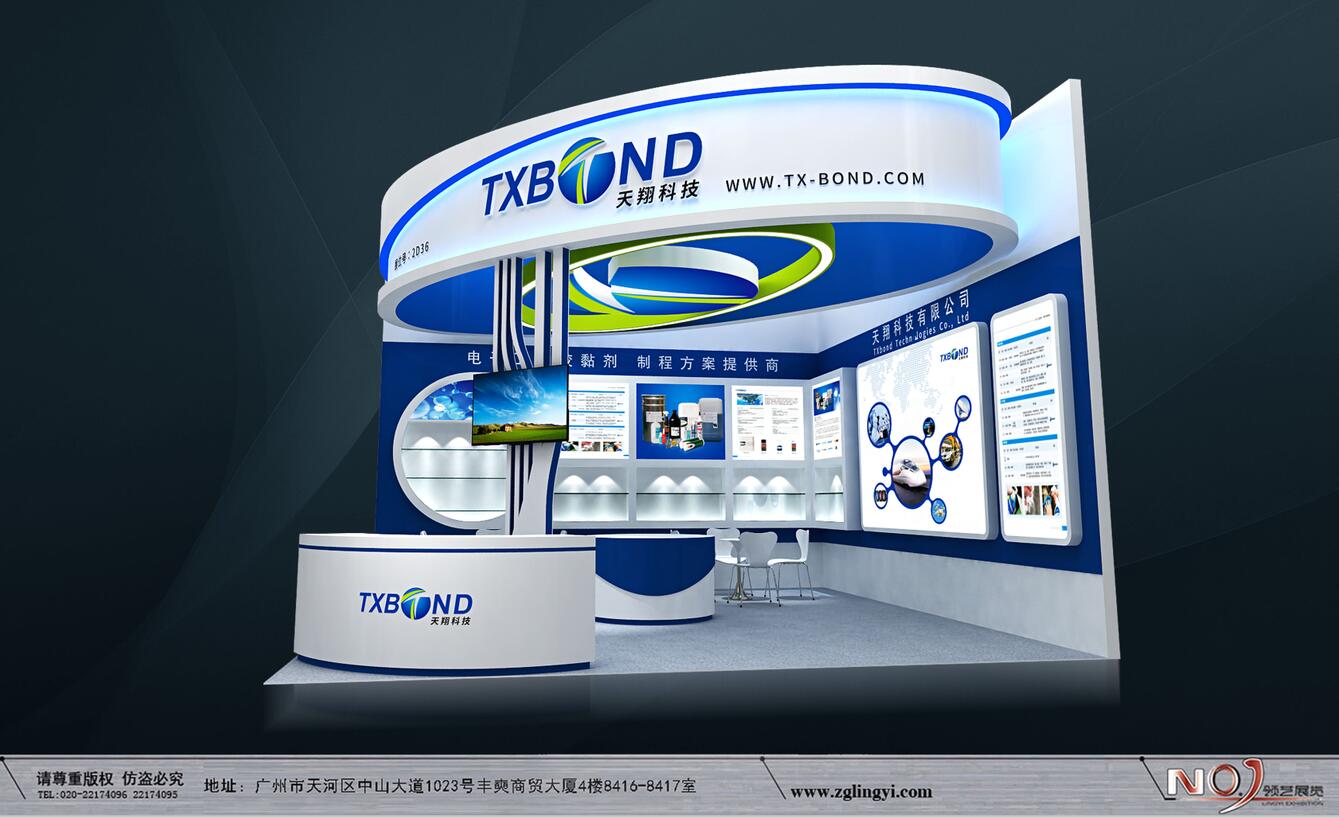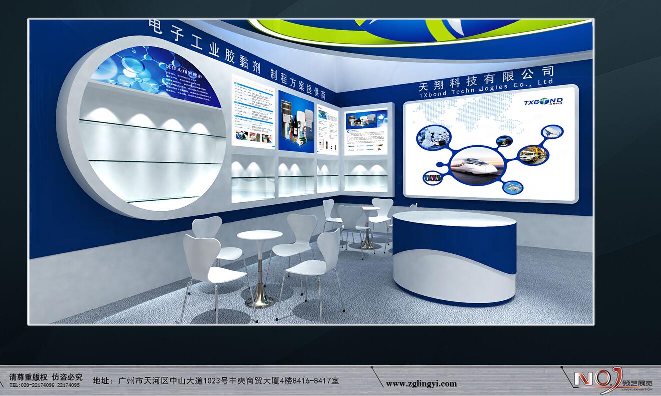契合天翔科技品牌形象和產(chǎn)品特性,利用天花造型,再搭配燈具燈光的效果,襯托出展位現(xiàn)代、突出一種現(xiàn)代、高端的時尚品味。