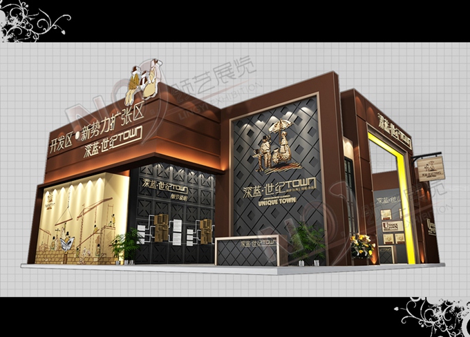 巧妙的運(yùn)用棕色、黑色作搭配,著重突出品牌和產(chǎn)品的展示,使整個(gè)展位時(shí)尚新穎又大氣。