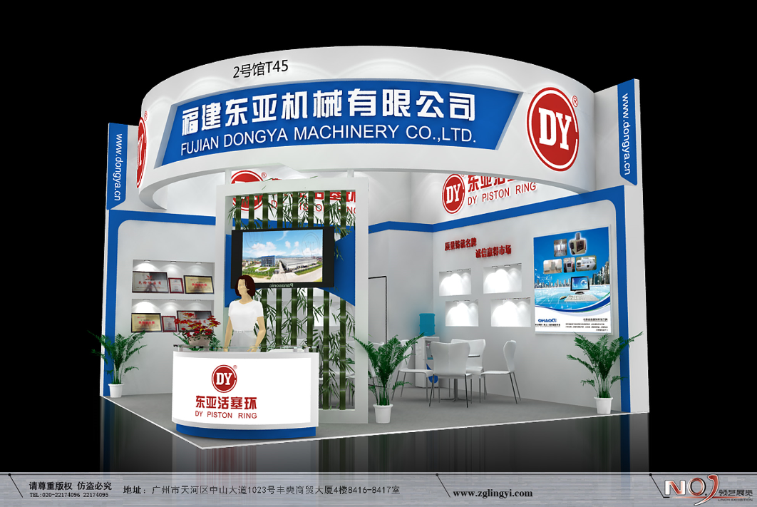 契合東亞活塞環(huán)的品牌形象和產(chǎn)品特性,采用弧形、結(jié)構(gòu),再搭配燈具燈光的效果,襯托出展位簡約、時尚的氛圍,突出一種現(xiàn)代、簡約的時尚品味。