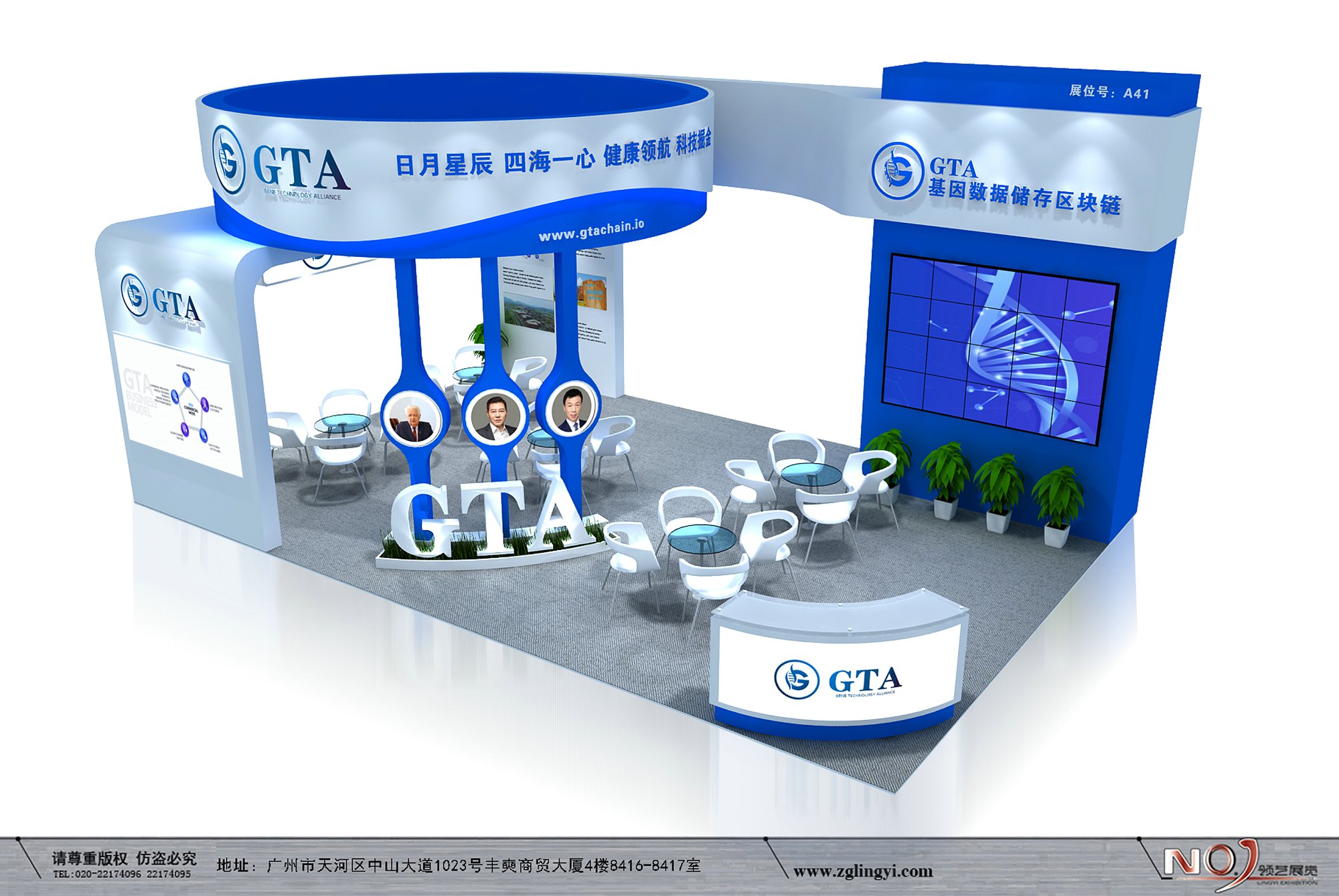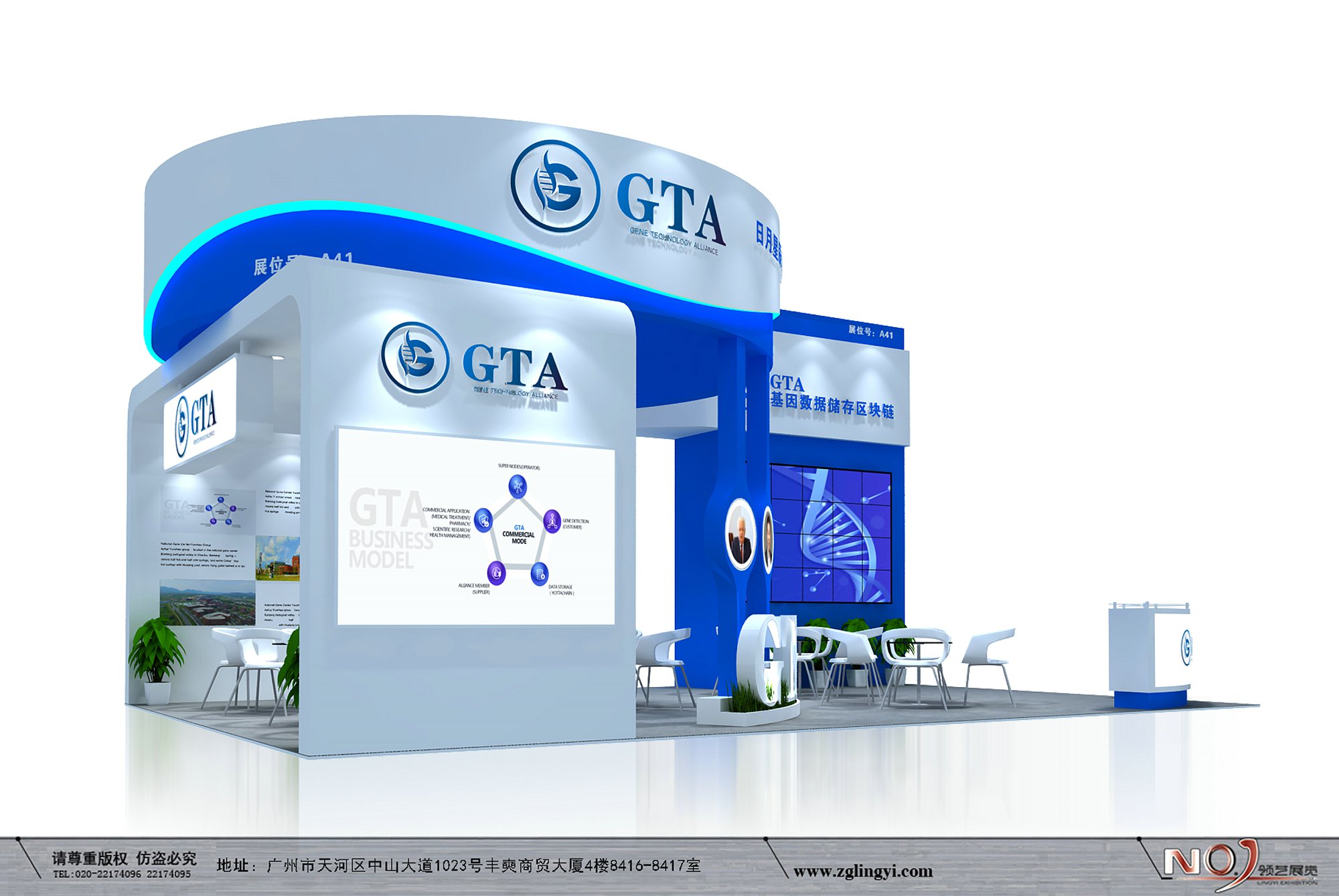 契合GTA的品牌形象和產(chǎn)品特性,采用弧形結(jié)構(gòu),再搭配燈具燈光的效果,襯托出展位大氣、豪華的氛圍,突出一種簡(jiǎn)約、時(shí)尚的品味。