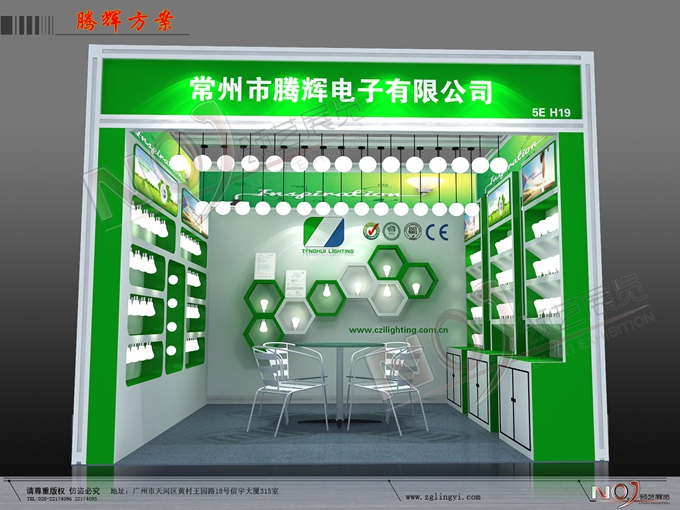 契合的騰輝品牌形象和產(chǎn)品特性,采用矩形結(jié)構(gòu),再搭配燈具燈光的效果,襯托出展位高端、時(shí)尚的氛圍,突出一種現(xiàn)代、歐美的時(shí)尚品味。