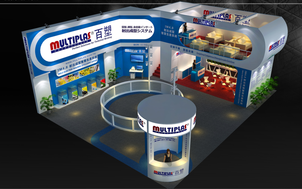 契合百塑的品牌形象和產(chǎn)品特性,采用曲線、框型結(jié)構(gòu),再搭配燈具燈光的效果,襯托出展位簡(jiǎn)約、融合的氛圍,突出一種高端、舒適的時(shí)尚品味。