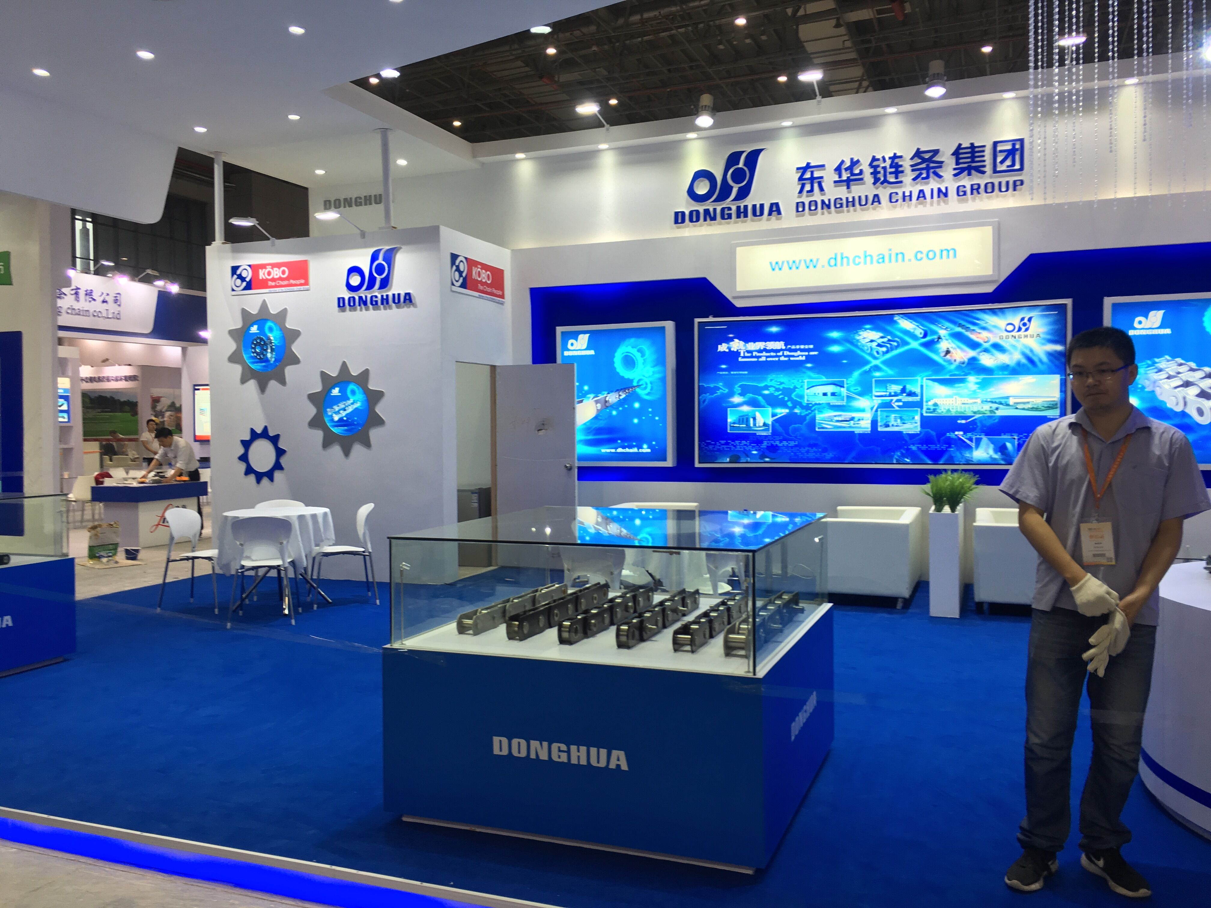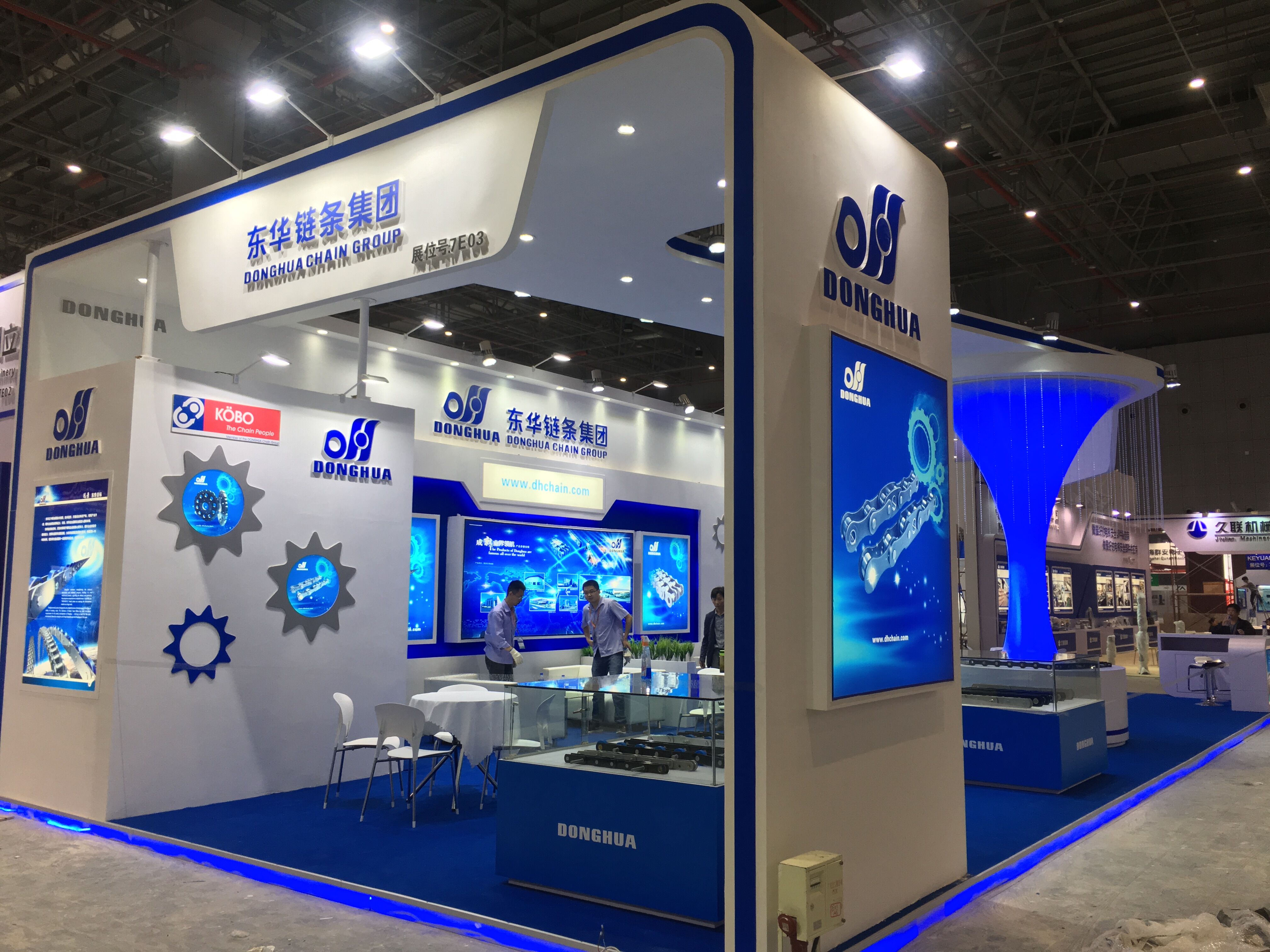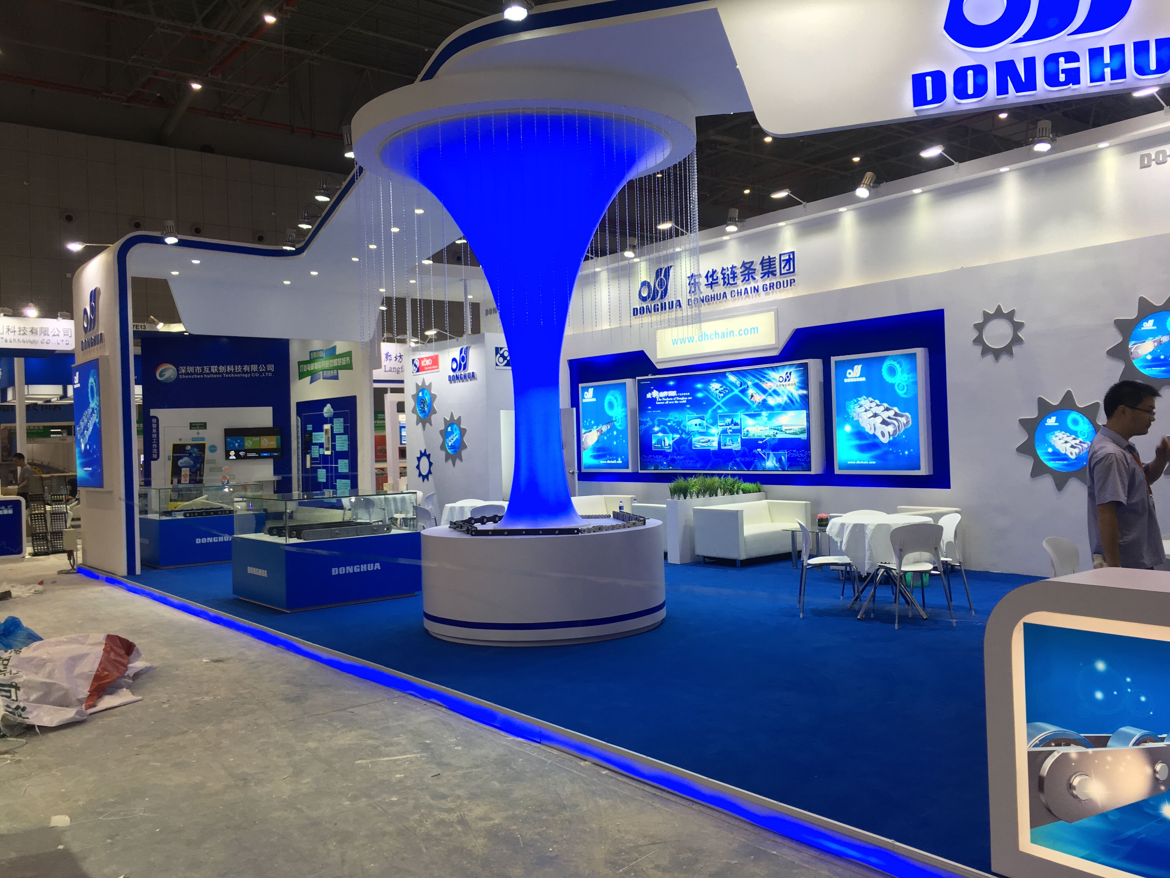 契合東華鏈條的品牌形象和產(chǎn)品特性,采用開放式式的造型,再搭配燈具燈光的效果,襯托出展位現(xiàn)代、清新氛圍,突出一種現(xiàn)代、高端的時(shí)尚品味。