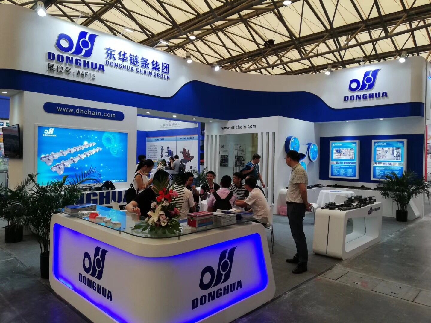 契合東華鏈條的品牌形象和產(chǎn)品特性,采用開放式的造型,再搭配燈具燈光的效果,襯托出展位現(xiàn)代、清新氛圍,突出一種現(xiàn)代、高端的時尚品味。