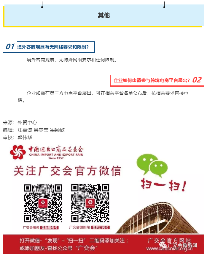 根據(jù)廣交會(huì)線上展廳設(shè)計(jì)公司領(lǐng)藝展覽了解到,萬眾矚目的第127屆廣交會(huì),將于6月15-24日在網(wǎng)上舉辦。本屆廣交會(huì)如何舉辦,參展企業(yè)如何“云展示”及“云營銷”,都是大家關(guān)心的熱點(diǎn)問題。為做好廣交會(huì)在網(wǎng)上舉辦的參展指引工作,及時(shí)讓企業(yè)了解和配合相關(guān)組織工作,大會(huì)將視工作進(jìn)展,分多次發(fā)布參展指引。現(xiàn)公布指引之三,敬請(qǐng)關(guān)注!如需廣交會(huì)線上展廳設(shè)計(jì)請(qǐng)聯(lián)系領(lǐng)藝展覽,希望我們能在廣交會(huì)搭建上為您添磚加瓦,祝各位朋友收獲多多,滿載而歸!