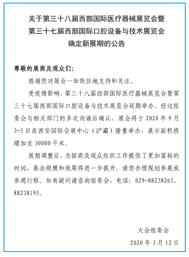 根據(jù)西部醫(yī)療展設(shè)計(jì)搭建公司領(lǐng)藝展覽了解到,受疫情影響,第三十八屆西部國際醫(yī)療器械展覽會(huì)調(diào)整至2020年9月3-5日在西安國際會(huì)展中心(浐灞)隆重舉辦。如需西部醫(yī)療展設(shè)計(jì)請聯(lián)系領(lǐng)藝展覽,希望我們能在西部醫(yī)療展搭建上為您添磚加瓦,祝各位朋友收獲多多,滿載而歸!