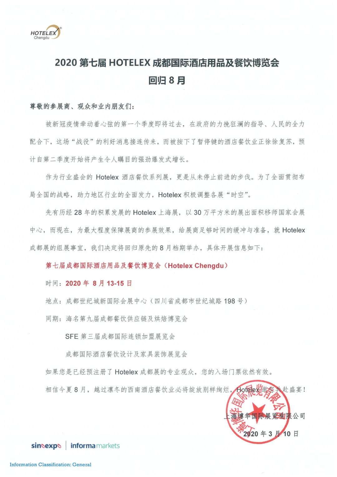 根據(jù)餐博會(huì)設(shè)計(jì)搭建公司領(lǐng)藝展覽了解到,2020 HOTELEX成都,為肩負(fù)起復(fù)興西南酒店餐飲行業(yè)的光榮使命,為最大程度保障展商的參展效果,并營造舒適安全的參展觀展環(huán)境,幾經(jīng)慎重商榷,辦展時(shí)間回歸8月,確定為2020年 8月13-15日。如需餐博會(huì)設(shè)計(jì)請聯(lián)系領(lǐng)藝展覽,希望我們能在餐博會(huì)搭建上為您添磚加瓦,祝各位朋友收獲多多,滿載而歸!