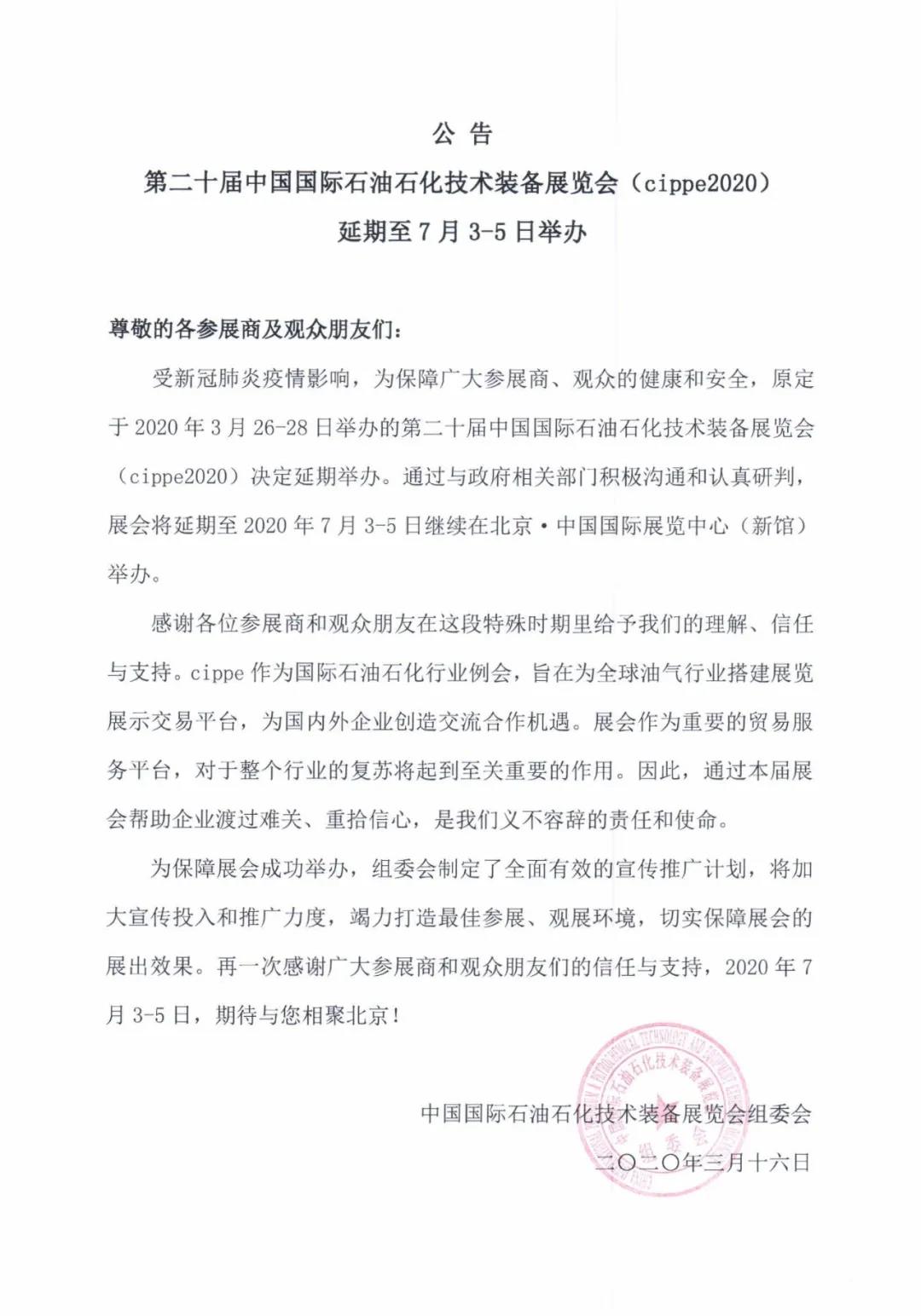 根據(jù)北京石油展設(shè)計(jì)搭建公司領(lǐng)藝展覽了解到原定于2020年3月26-28日舉辦的第二十屆中國國際石油石化技術(shù)裝備展覽會(huì)(cippe2020),將延期至7月3日至5日在北京·中國國際展覽中心(新館)舉行,歡迎您屆時(shí)參展參觀。如需北京石油展展會(huì)設(shè)計(jì)請(qǐng)聯(lián)系領(lǐng)藝展覽,希望我們能在北京石油展搭建上為您添磚加瓦,祝各位朋友收獲多多,滿載而歸!
