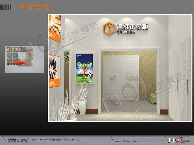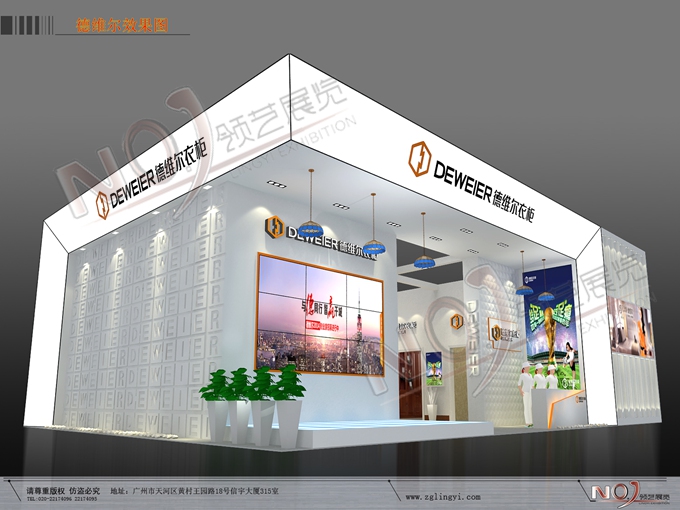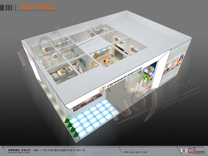 契合德維爾的品牌形象和產(chǎn)品特性,采用框型結(jié)構(gòu),再搭配燈具燈光的效果,襯托出展位時(shí)尚、簡(jiǎn)約的氛圍,突出一種融合、個(gè)性的時(shí)尚品味。